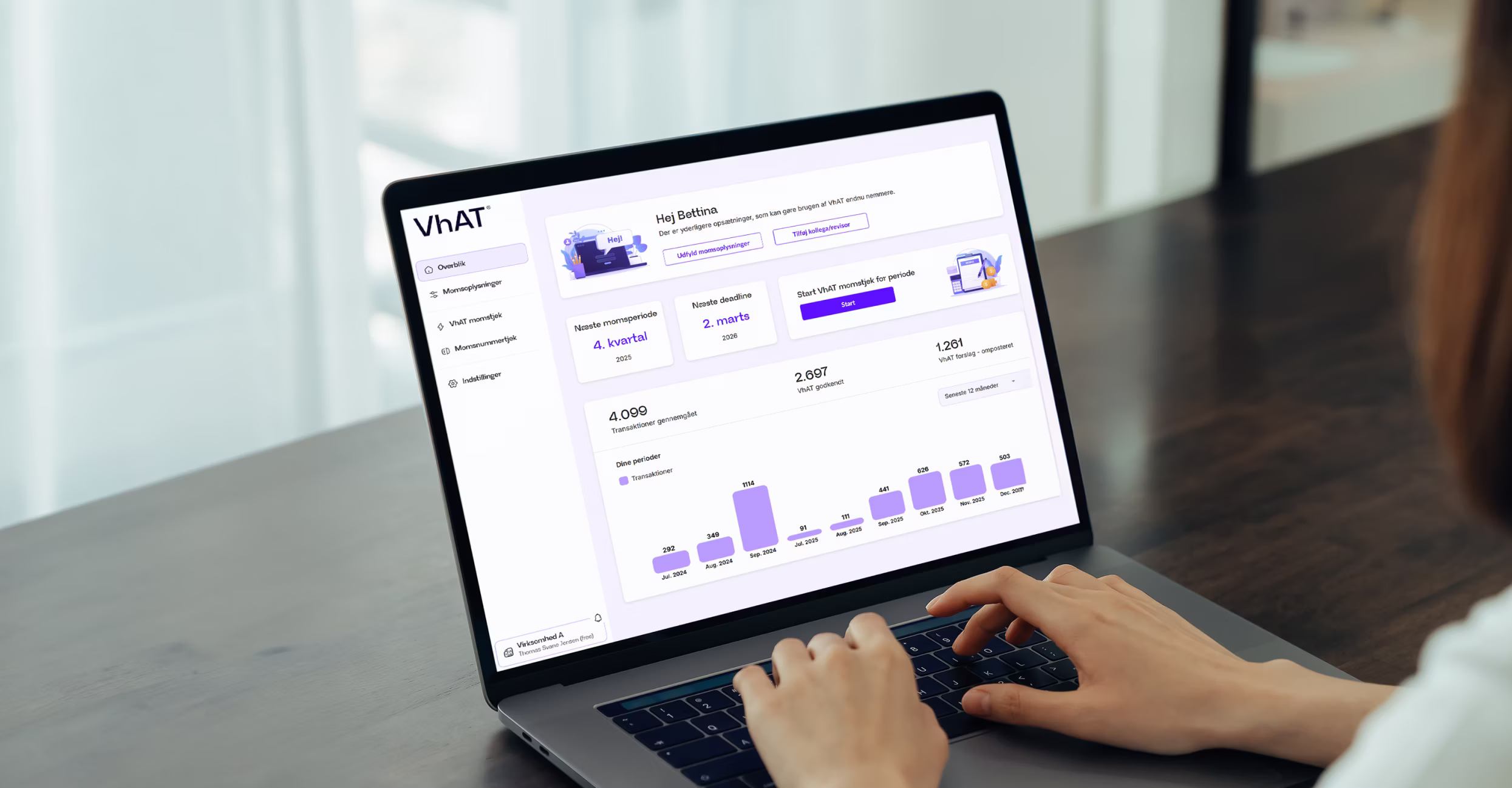 Spar tid på moms. Slip for manuelt momsarbejde og lad VhAT klare det, så du kan fokusere på din forretning.